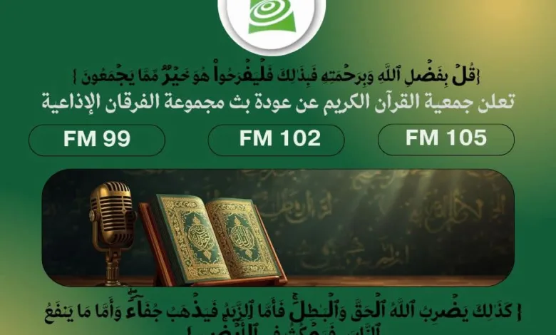أعلنت جمعية القرآن الكريم عن عودة مجموعة الفرقان الإذاعية إف إم للبث بعد توقفها لفترة طويلة حيث تعمل المجموعة الإذاعية…