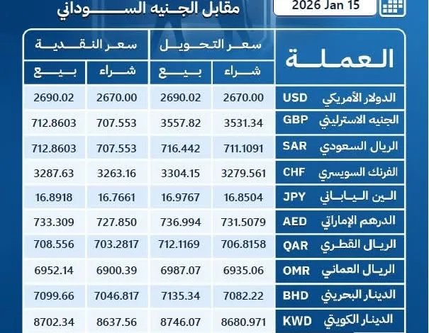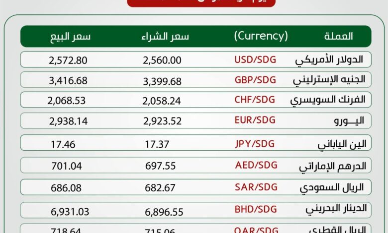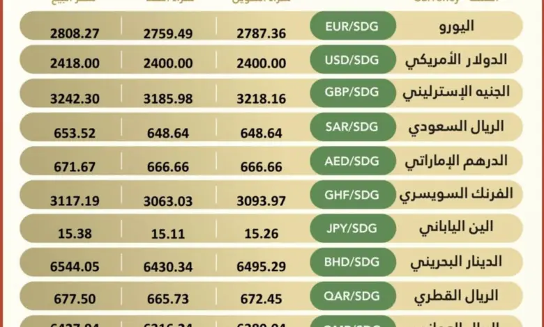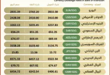 اسعار صرف العملات الاجنبية مقابل الجنيه السوداني