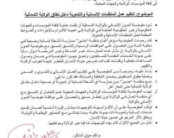 مفوضية العون الإنساني تمنع منظمة (حنين) من ممارسة أي أنشطة إنسانية أو تنموية داخل نطاق الولاية الشمالية