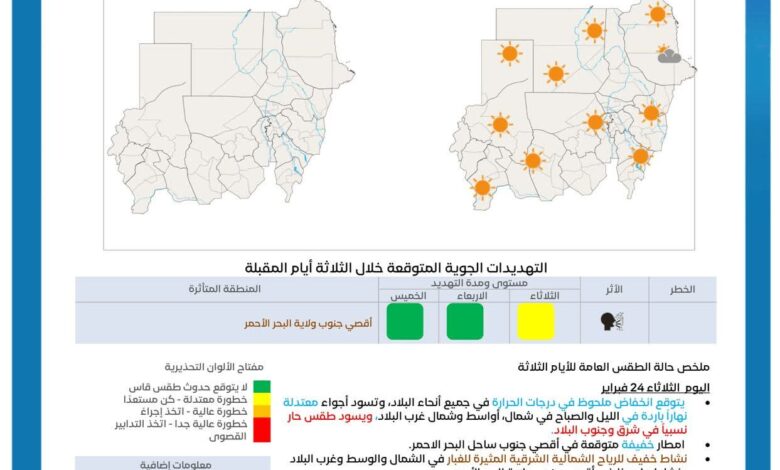 أصدرت الهيئة العامة للأرصاد الجوية تقرير حالة الطقس والأجواء في البلاد خلال الأيام المقبلة وتوقعت الهيئة في نشرتها الصادرة اليوم…