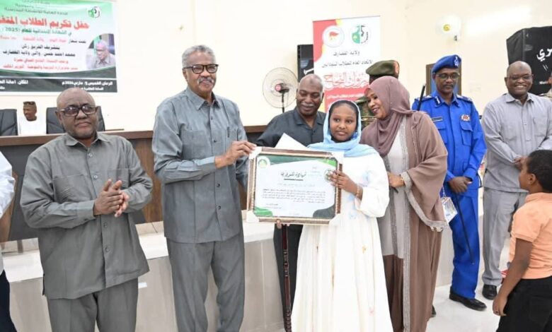 والي القضارف يشهد تكريم اوائل الشهادة الابتدائية بالولاية