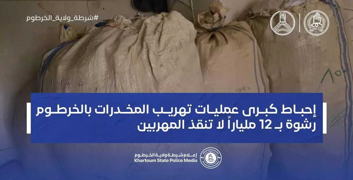 شرطة ولاية الخرطوم تحبط محاولة تسليم شحنة ضخمة لمواد مخدرة بميدان جامع فلسطين بدار السلام بامبدة فجر اليوم الجمعة وذلك إثر كمين محكم أسفر عن ضبط 4860 قندول حشيش مخبأة داخل 6 جوالات بجانب السيطرة على عربتين (بوكس 2021 وتويوتا أوباما) وسلاحين كلاشينكوف بعد مطاردة عنيفة وتبادل لإطلاق النار مع الجناة
