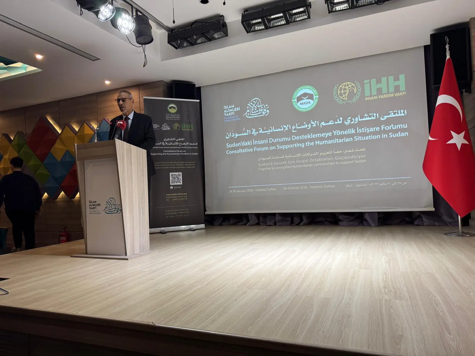 عقدت منظمة الدعوة الإسلامية بالتعاون مع هيئة الإغاثة الإنسانية التركية ووقف علماء الإسلام ملتقي تشاورياً لحشد الدعم للسودان حيث جاء الملتقي الذي انعقد في إستانبول تحت شعار (معاً لتعزيز الشراكات الإنسانية لمساندة السودان) وذلك بحضور رئيس مجلس إدارة المنظمة عثمان بوقاجي والأمين العام أحمد محمد آدم وتشريف الدكتور عصام أحمد البشير ، وفي ختام المداولات أكد المشاركون علي أهمية الوقوف الصلب مع الشعب في مرحلتي الإعاثة وإعادة الإعمار مع تسخير الإمكانيات المادية والجهود البشرية لدعم النازحين واللاجئين المتضررين من الحرب مع التأكيد علي توظيف الآليات الإعلامية للتعريف بحجم الكارثة الإنسانية وعكس معاناة السودانيين ومأساتهم مع تعزيز المبادرات لمناصرة السودان في المحافل الدولية والتأمين علي تطوير آليات العمل للإستجابة لتحديات العودة الطوعية وبناء قدرات المجتمعات المتأثرة بالحرب، هذا إلي جانب الإشادة بالجهود السودانية والدولية في المجال الإنساني، والدعوة لزيادة الدعم الإغاثي والتنموي وتقدير جهود المنظمات السودانية والجهود الأهلية، وأوصي الملتقي بتكوين آلية دائمة بغرض التشاور والتنسيق المشترك بشأن السودان وتعزيز دور التحالف الإنساني الذي تأسس في العام 2024م ، والإتفاق علي تنظيم مؤتمر دولي لدعم السودان خلال النصف الأول من العام الحالي، هذا بالإضافة إلي دعوة الأمانة العامة لمنظمة الدعوة الإسلامية لإعداد تقرير شامل حول مداولات الملتقي وتعميمه علي المشاركين، وقدم الملتقي شكره للحكومة التركية علي جهودها المبذولة في العمل الأغاثي.
