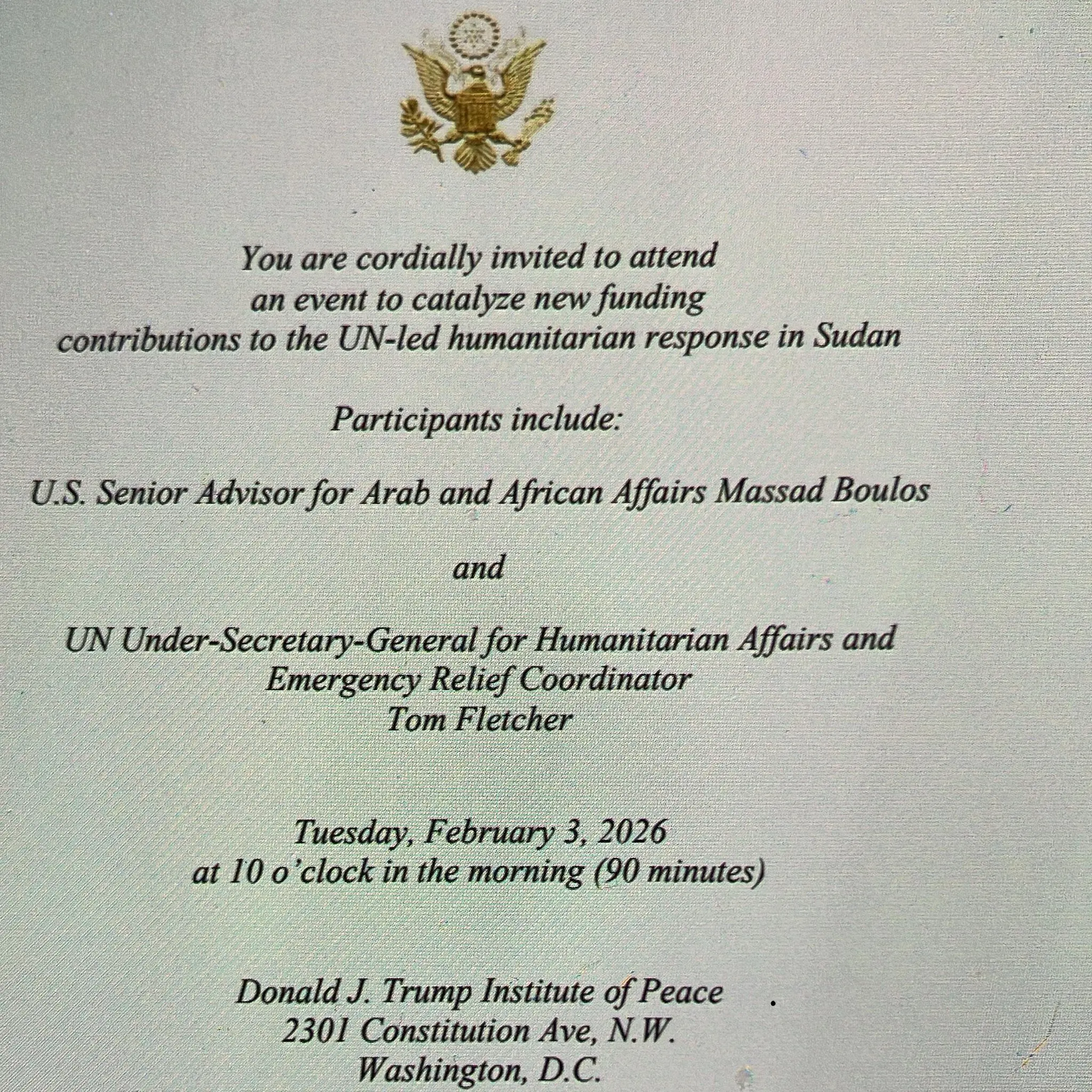 قرر الرئيس الأمريكي دونالد ترامب تحديد المؤتمر الإنساني الخاص بدعم السودان في يوم الثلاثاء 3 فبراير 2026م في العاصمة واشنطن وذلك بمشاركة سفراء دول الرباعية (الولايات المتحدة الأمريكية، السعودية، الإمارات ومصر) إلي جانب بريطانيا والكويت وقطر حيث يترأس الجانب الاميركي في المؤتمر كبير المستشارين مسعد بولس ، وسيكون الهدف من إنعقاد المؤتمر الإعلان عن التزامات أو تعهّدات لدعم السودان (صندوق السودان الإنساني) .