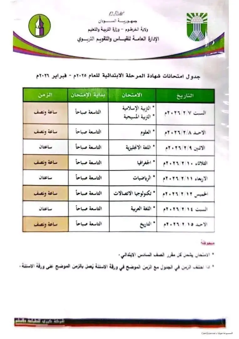 (125) الف طالباً بولاية الخرطوم يجلسون لامتحانات الشهادة الابتدائية في السابع من فبراير