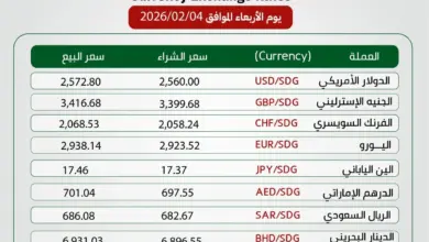 أسعار الصرف للعملات الأجنبية مقابل الجنيه السوداني في البنك الاهلي السوداني اليوم الخميس 5 فبراير