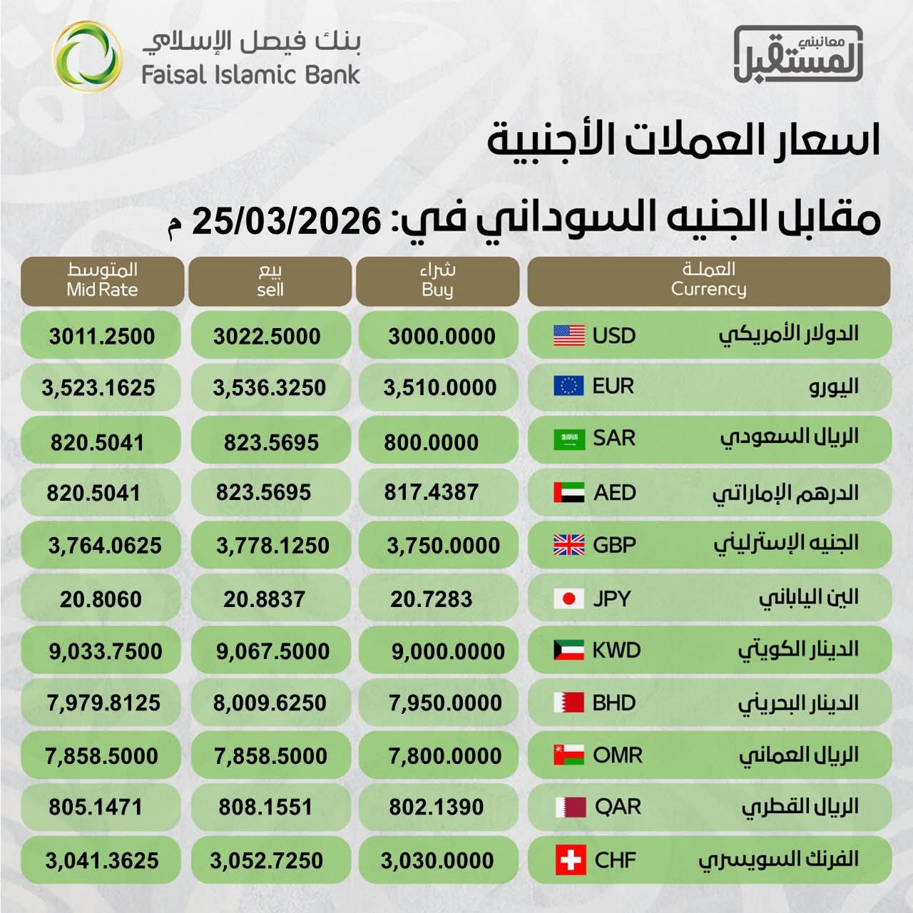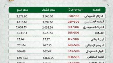 #أسعار_الصرف_للعملات_الاجنبية مقابل الجنيه السوداني ليوم الأربعاء الموافق : 25/03/2026