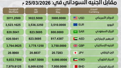 أسعار العملات الأجنبية مقابل الجنيه السوداني اليوم الخميس 26 مارس