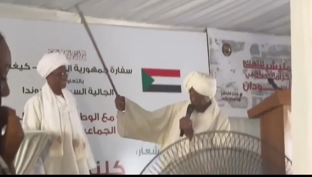 في مقطع فيديو مُتداول ظهر رئيس الجالية السودانية برواندا أثناء إحتفالية اقامتها السفارة بكيغالي تضامنا مع اهالي الفاشر وبارا وهو يهدد بقطع راس البرهان بالسيف في حال توقيعه لاتفاق سلام أو هدنة مع الدعم السريع