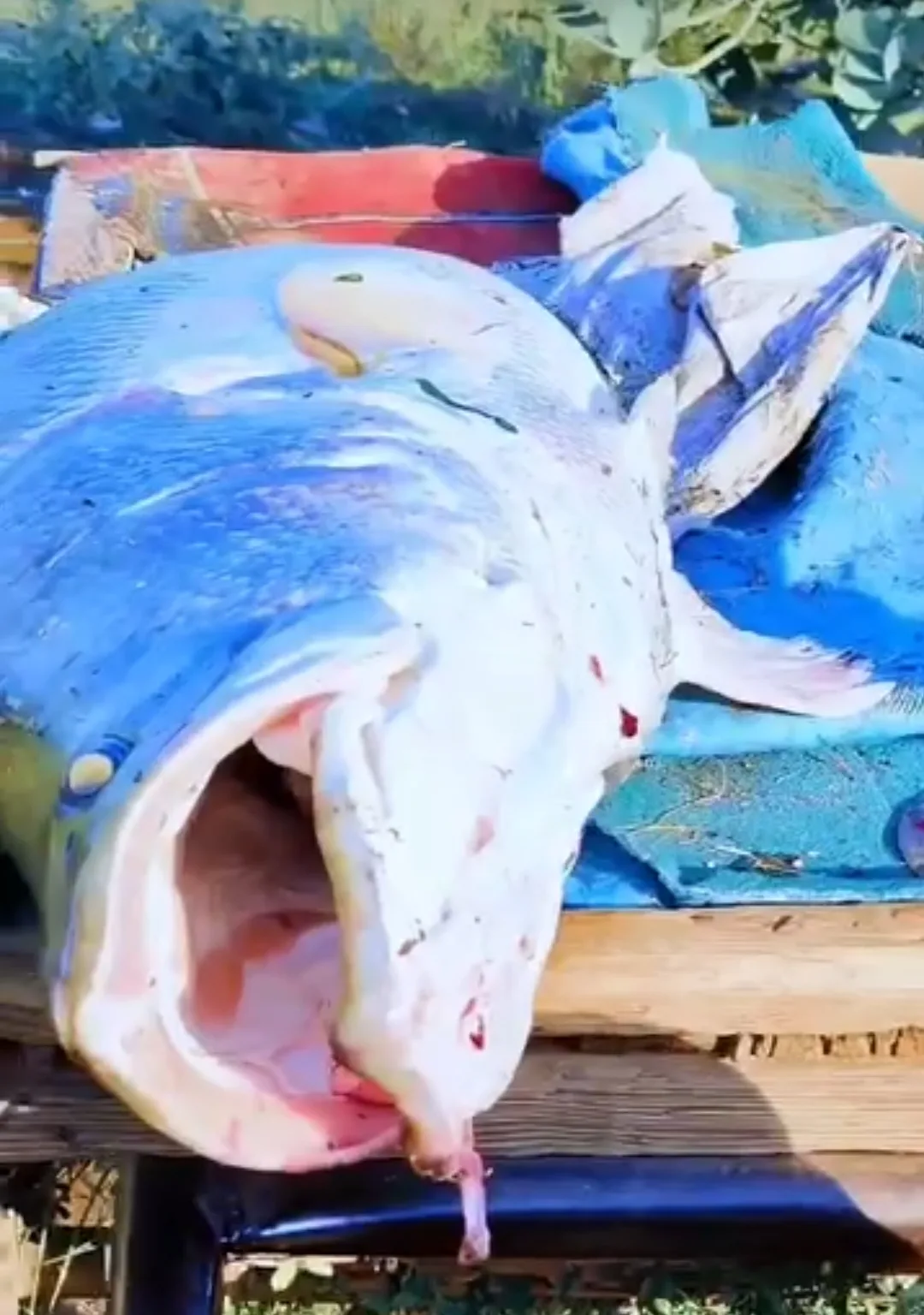 صياد بقرية نقزو ريفي ود حامد بمحلية المتمة يصطاد سمكة ضخمة تزن 95 كيلو غراما