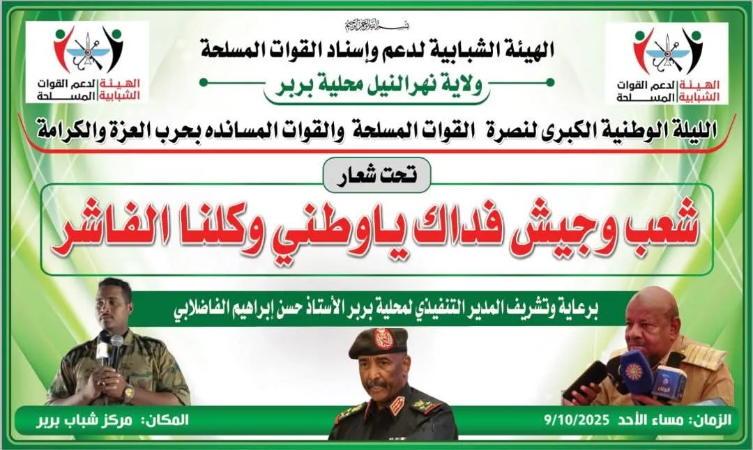 الرئيسية/محلية/الهيئة الشبابية لنصرة الجيش تنظم ليلة كبري في بربر لدعم الجيش محلية أخر الأخبار الهيئة الشبابية لنصرة الجيش تنظم ليلة كبري في بربر لدعم الجيش Alhadiمنذ 3 أسابيع0 305 أقل من دقيقة الوسوم#الهيئة الشبابية لدعم القوات الجيش نسخ الرابط تم نسخ الرابط Alhadiمنذ 3 أسابيع0 305 أقل من دقيقة شاركها فيسبوك X ماسنجر ماسنجر واتساب تيلقرام