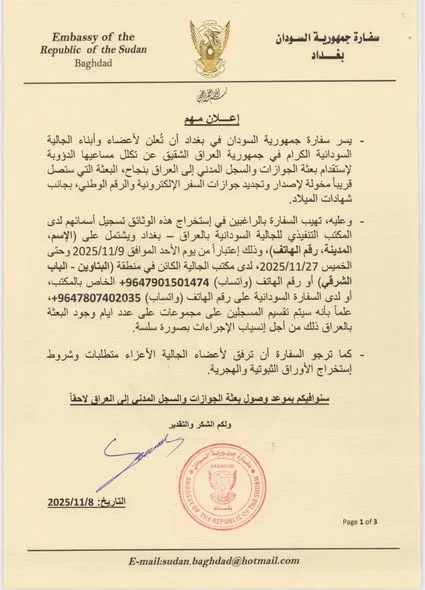 الرئيسية/عالمية/السفارة السودانية بالعراق تعلن عن وصول بعثة السجل المدني لبغداد عالمية أخر الأخبار السفارة السودانية بالعراق تعلن عن وصول بعثة السجل المدني لبغداد Alhadiمنذ 3 أسابيع0 295 أقل من دقيقة الوسوم#السفارة السودانية في العراق نسخ الرابط تم نسخ الرابط Alhadiمنذ 3 أسابيع0 295 أقل من دقيقة شاركها فيسبوك X ماسنجر ماسنجر واتساب تيلقرام
