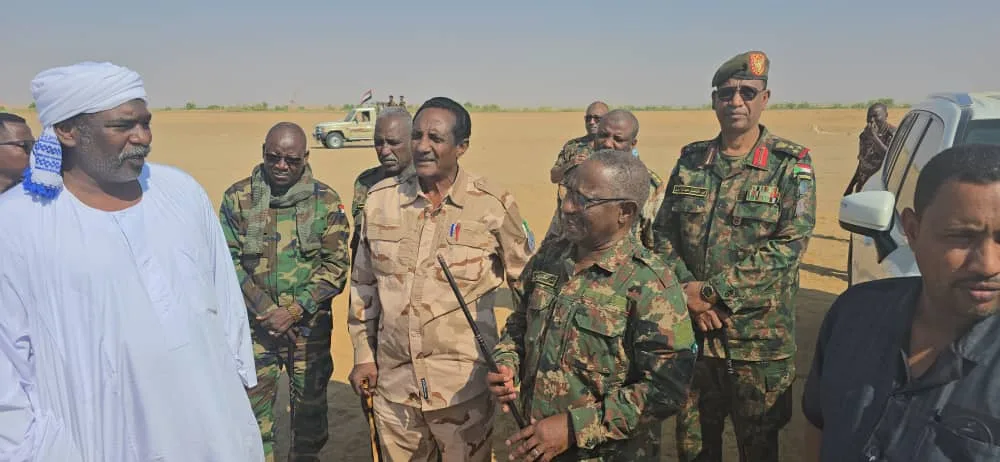 اللواء ركن م الباهي رئيس المقاومة الشعبية بالسودان يصل معسكر ازهري المبارك بالعفاض برفقة رئيس المقاومة بالشمالية وممثل حاكم دارفور.