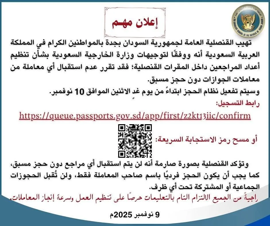 الرئيسية/عالمية/القنصلية السودانية بجدة تعتمد الحجز المسبق للجوازات وعدم إستقبال أي معاملة من معاملات الجواز دون حجز مسبق عالمية أخر الأخبار القنصلية السودانية بجدة تعتمد الحجز المسبق للجوازات وعدم إستقبال أي معاملة من معاملات الجواز دون حجز مسبق Alhadiمنذ 3 أسابيع0 566 أقل من دقيقة الوسوم# القنصلية السودانية بجدة نسخ الرابط تم نسخ الرابط Alhadiمنذ 3 أسابيع0 566 أقل من دقيقة شاركها فيسبوك X ماسنجر ماسنجر واتساب تيلقرام