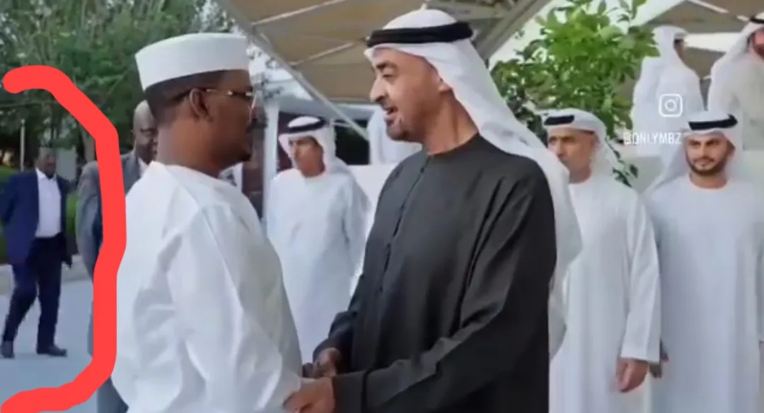 ظهور طه عثمان الحسين مدير مكاتب الرئيس المخلوع عمر البشير بعد فترة اختفاء خلال مراسم إستقبال الرئيس الاماراتي محمد بن زايد لنظيره التشادي في ابوظبي امس