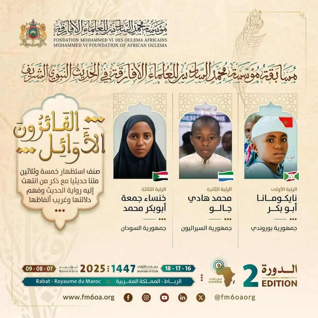 فوز خنساء جمعة أبوبكر بالمركز الثالث عالمياً في مسابقة الملك محمد السادس في الحديث النبوي بالمغرب