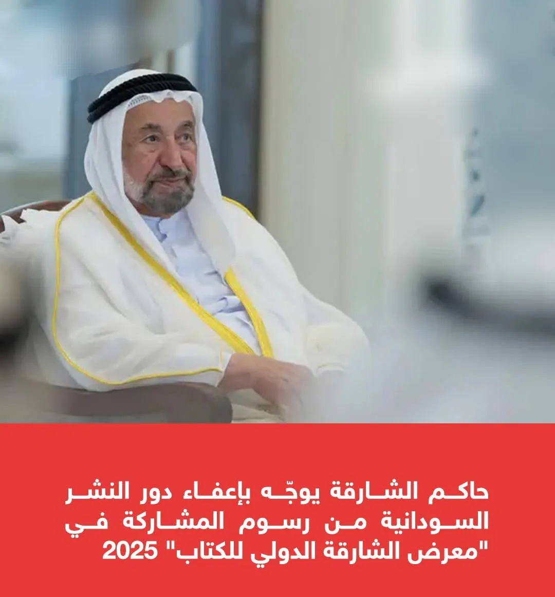 حاكم الشارقة يوجّه بإعفاء دور النشر السودانية من رسوم المشاركة في معرض الشارقة الدولي للكتاب 2025 م
