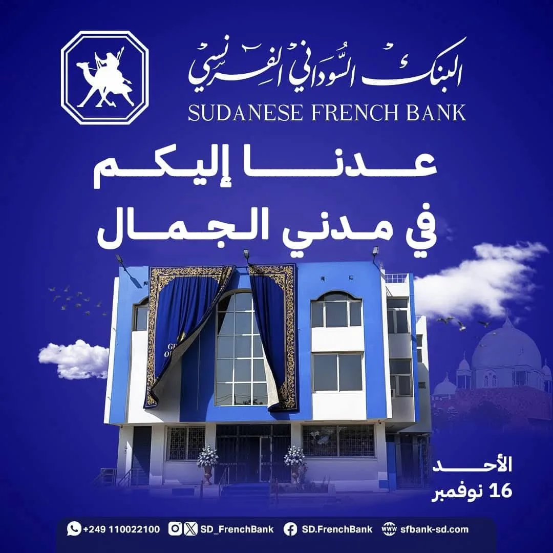 أعلن البنك السوداني الفرنسي إعادة إفتتاح فرعه بود مدني اليوم الأحد ليبدأ البنك إستقبال عملائه وتقديم جميع خدماته المصرية إعتباراً من اليوم الأحد وحتي الخميس من كل أسبوع وقالت إدارة البنك أنها عملت خلال الفترة الماضية على تجهيز الفرع وتحديث بيئة العمل لضمان تجربة مصرفية أكثر راحة وسلاسة لعملائها بأفضل معايير الجودة والإحترافية.