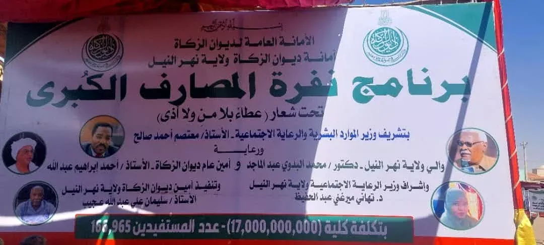 دشن وزير الموارد البشرية والرعاية الإجتماعية معتصم أحمد صالح بالدامر اليوم الثلاثاء مشروعات نفرة المصارف الكبري التي نظمها ديوان الزكاة بالولاية بتكلفة بلغت حوالي الـ 13 ترليون جنيه يُتوقع أن تغطي أكثر من (166,000) من الأسر المتعففة وقال ان هذه المشروعات تعتبر عملية لمكافحة الفقر وتعد تجربة غير مسبوقة ووجه بتعميمها علي بقية ولايات البلاد بما يمكن من خروج الفقراء والشرائح الضعيفة من دائرة الفقر والدخول في دائرة الانتاج بدلاً من الدعم النقدي والعيني المباشر وابان بان الظروف التي تمر بها البلاد تحتم ضرورة الاتجاه نحو المشروعات الانتاجية وتوسيع دائرة المستفدين منها وادخال المزيد من الشرائح علي راسها شريحة الاعلاميين ، فيما عبر والي نهر النيل محمد البدوي عبد الماجد عن رضاه إرتياحه للاداء الزكوي بنهر النيل وتميز العاملين بالزكاة علي مستوي الولاية .