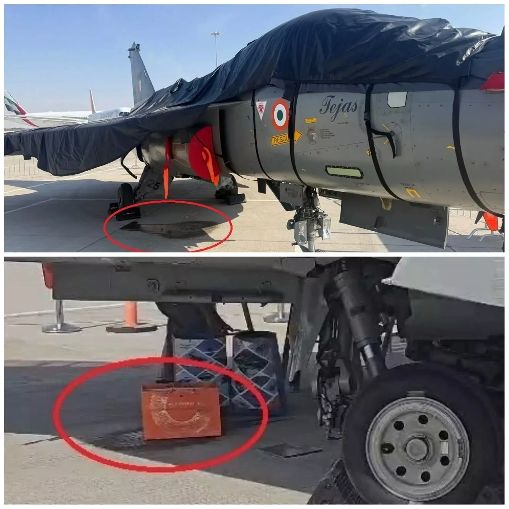 وتُظهر الصور أكياساً استُخدمت لجمع السائل المتساقط من الطائرة، وبقعة ظاهرة من التسرب علي الارض وبرر الجانب الهندي ذلك بأنه مجرد تسرب مكثف من نظام تكييف الهواء ومع ذلك، واصلت الطائرة عروضها.