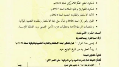 أصدر والي الشمالية الفريق ركن عبد الرحمن عبد الحميد إبراهيم، أمر الطوارئ رقم ٦ لسنة ٢٠٢٥م الخاص بحظر ومنع نقل السلع والبضائع والأشياء من الولاية الشمالية لمناطق تواجد الميليشيا المتمردة بولايات كردفان ودارفور وغرب الولاية الشمالية .