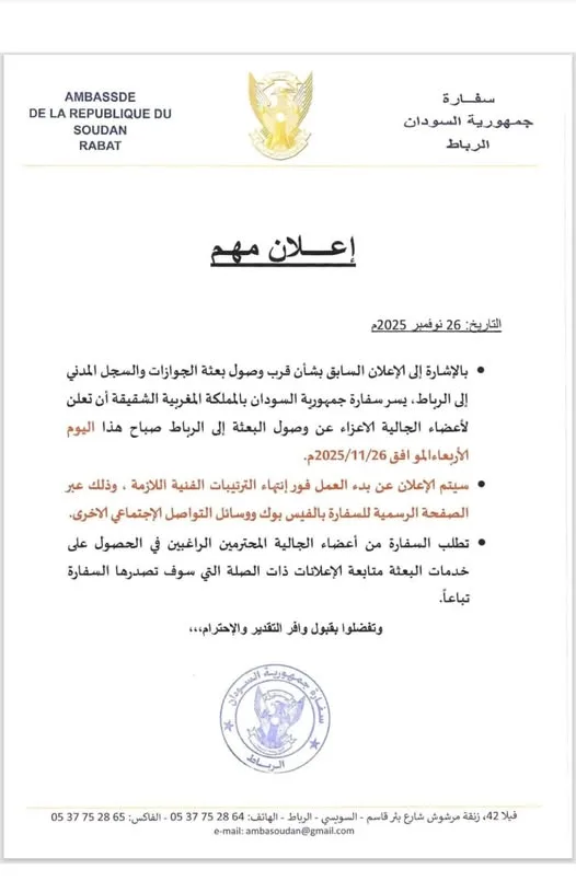 الرئيسية/عالمية/السفارة السودانية في المغرب تعلن عن وصول فريق السجل المدني للعاصمة الرباط عالمية أخر الأخبار السفارة السودانية في المغرب تعلن عن وصول فريق السجل المدني للعاصمة الرباط Alhadiمنذ 4 أيام0 21 أقل من دقيقة الوسوم# السجل المدني نسخ الرابط تم نسخ الرابط Alhadiمنذ 4 أيام0 21 أقل من دقيقة شاركها فيسبوك X ماسنجر ماسنجر واتساب تيلقرام