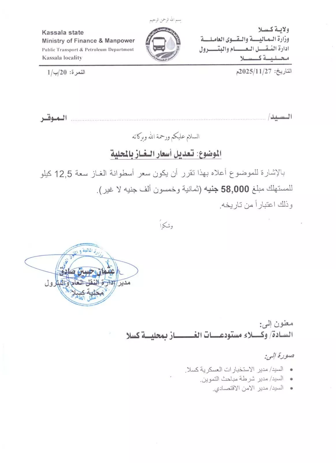 تعديل أسعار تعبئة أسطوانات الغاز في كسلا