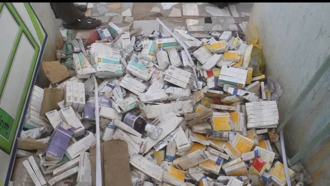 وقف المدير التنفيذي لمحلية جبل أولياء علي تجمع للادويه منتهية الصلاحية كانت مكدسة داخل مبني رئاسة قطاع الازهري بمدينة الانقاذ خلال فترة الحرب