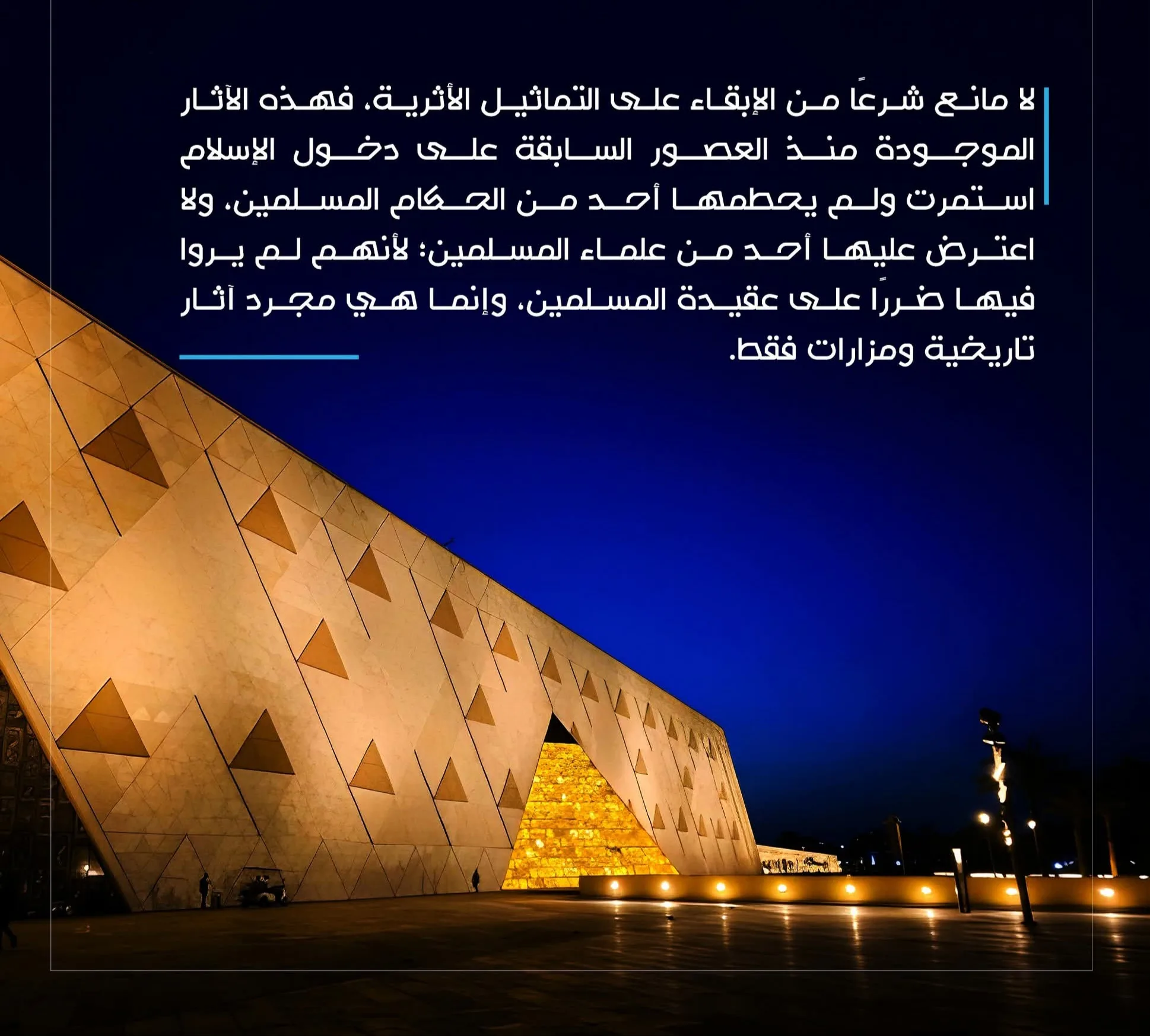 أجازت دار الإفتاء المصرية الإبقاء علي التماثيل الأثرية، وأفتت بعدم وجود مانع شرعي من الإبقاء عليها ، مؤكدة في فتوي نشرتها علي صفحتها الرسمية في الفيس بوك أن هذه الآثار الموجودة منذ العصور السابقة على دخول الإسلام استمرت ولم يحطمها أحد من الحكام المسلمين، ولا اعترض عليها أحد من علماء المسلمين؛ لأنهم لم يروا فيها ضررًا على عقيدة المسلمين، وإنما هي مجرد آثار تاريخية ومزارات فقط.