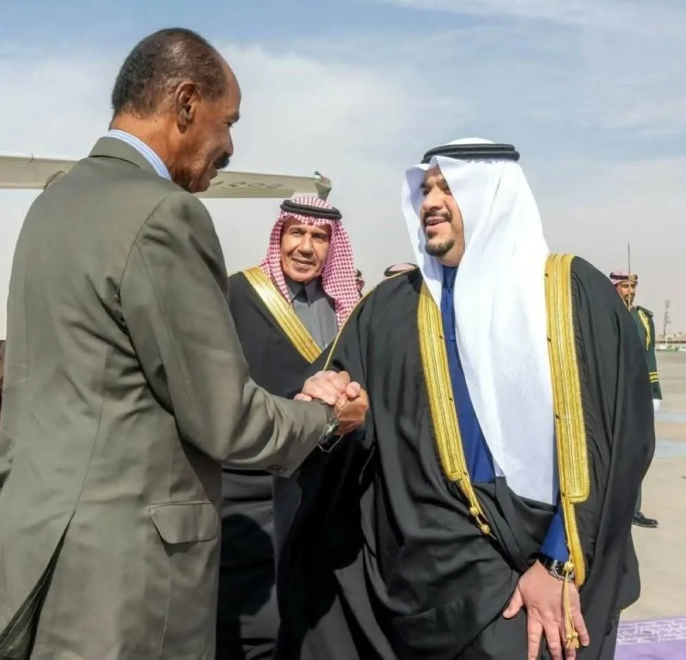 وكان في استقباله في مطار الملك خالد الدولي الأمير محمد بن عبدالرحمن بن عبدالعزيز نائب أمير منطقة الرياض، والقائم بالأعمال في سفارة إريتريا لدى المملكة وينيني قرزقهير، ومدير شرطة منطقة الرياض المكلف اللواء منصور بن ناصر العتيبي، ووكيل المراسم الملكية فهد الصهيل.