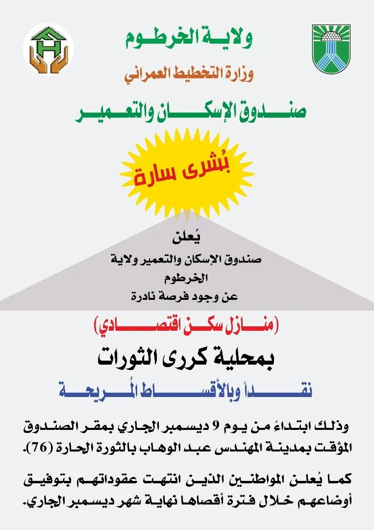 أعلن صندوق الإسكان والتعمير التابع لوزارة التخطيط العمراني عن فتح باب التسجيل للمواطنين للتقديم للحصول علي منازل السكن الإقتصادي بمقر الصندوق في الثورة الحارة 76 وذلك حتي نهاية الشهر الجاري.