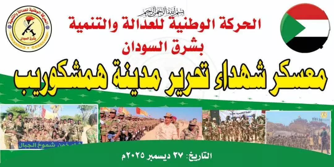 أكملت الحركة الوطنية للعدالة والتنمية بقيادة محمد طاهر سليمان علي بيتاي إستعداداتها للاحتفال بمناسبة عيدها التأسيسي الثالث وذلك بمدينة همشكوريب في الـ 27 من الشهر الجاري ، وسط ترتيبات تنظيمية واسعة ومشاركة متوقعة من قيادات الحركة وأعضائها وممثلي المجتمع المحلي، ويأتي هذا الاحتفال في إطار تقييم مسيرة الحركة خلال الأعوام الثلاثة الماضية، واستعراض أبرز إنجازاتها وأهدافها المستقبلية في دعم قضايا العدالة والتنمية وتعزيز الاستقرار الاجتماعي والسياسي بشرق السودان ، ويتضمن برنامج الاحتفال كلمات رسمية وفقرات توعوية وثقافية، إلى جانب التأكيد على دور الحركة في خدمة قضايا المواطنين وترسيخ مبادئ العمل الوطني والمسؤولية المجتمعية ، وأكدت قيادات بالحركة أن اختيار همشكوريب لاستضافة الفعالية يعكس رمزية المدينة ومكانتها ووفاءً لشهداء منطقة همشكوريب.