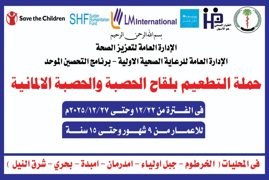 أعلنت محلية الخرطوم عن بدء الحملة القومية للاستجابة والتطعيم لوباء الحصبة والحصبة الألمانية بالمحلية في الفترة من 22 ديسمبر الجاري وحتى 27 من الشهر بالتنسيق مع الإدارة العامة لتعزيز الصحة بوزارة الصحة ولاية الخرطوم حيث تستهدف الحملة بالتطعيم الاثنين المقبل الفئة العمرية من 9 شهور وحتى 15 عاما، وأكدت مدير إدارة تعزيز الصحة بالإدارة العامة للنظام الصحي بمحلية الخرطوم اسماء احمد نور الهدى بأن الحملة تستهدف جميع الوحدات الإدارية بالمحلية عبر 27 مركز صحي ثابت لتقديم الخدمة بجانب 27 مركز متجول بجانب 135 فرق تطعيم مؤقتة متجولة، مشيرة بأن الحملة تسبقها حملات اعلامية توعوية تنبه بخطورة الوباء، إلى ذلك أكدت اسماء لفعالية اللقاح وأمن ومحفوظ في سلسلة تبريد جيدة، لافته لفعاليته طوال العمر شرطا إعطاء جرعات تنشيطية خلال فترات متباعدة تحدد وفقا للحملات المعلنة، مشيرة الي تلقى 543 فرد من فرق التطعيم لجرعات تدريبية عالية في كيفية إعطاء اللقاح بصورة آمنة وسليمة فضلا عن قيامهم بحصر الفئات العمرية المحددة، إلى ذلك نبهت اسماء الي خطورة وباء الحصبة والذي قد يؤدي إلى حالات وفاة في حالة عدم التطعيم إضافة إلى المضاعفات الخطرة للمرض القاتل، موجهة جميع الأسر بضرورة الاستجابة لحملة التطعيم خلال الفترة المعلنة واخضاع أبنائهم لتلقي جرعات التطعيم حسب الفئة العمرية المحددة.