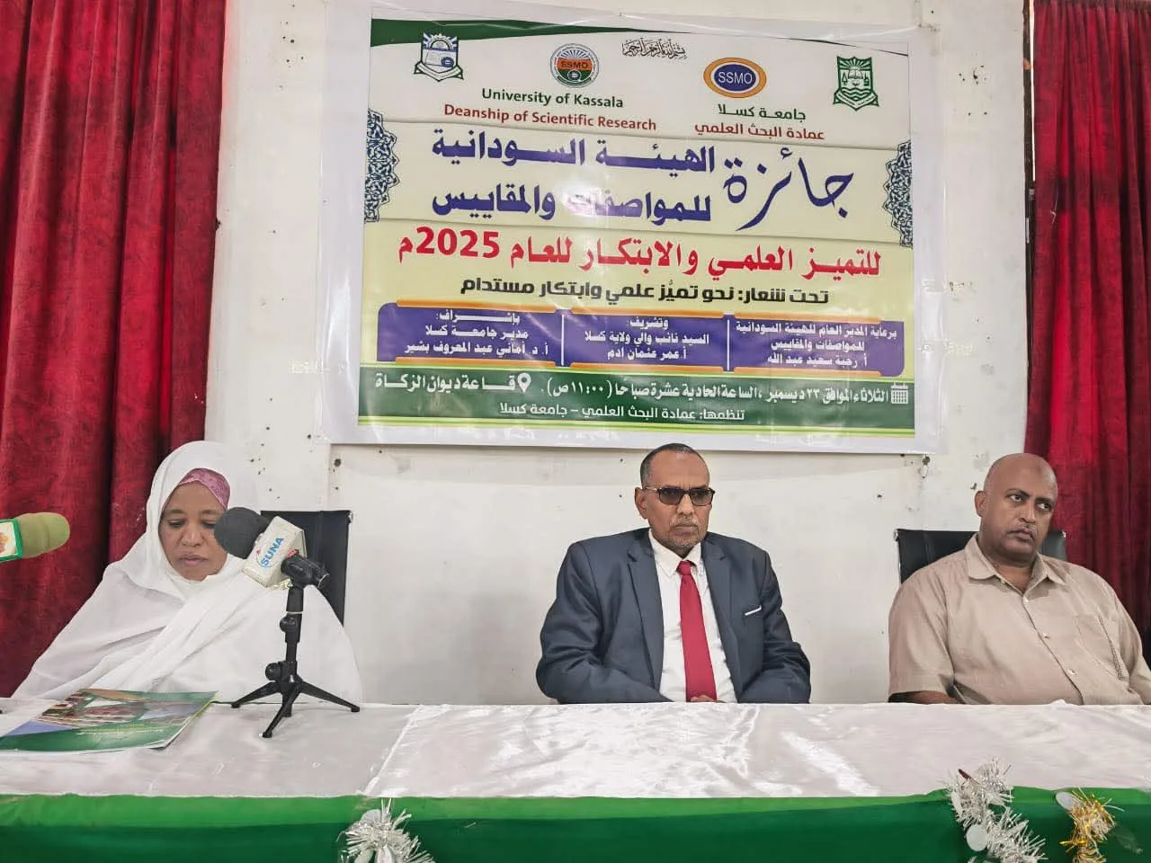 جامعة كسلا تُكرّم الفائزين بجائزة الهيئة السودانية للمواصفات والمقاييس للتميز العلمي والابتكار للعام 2025م