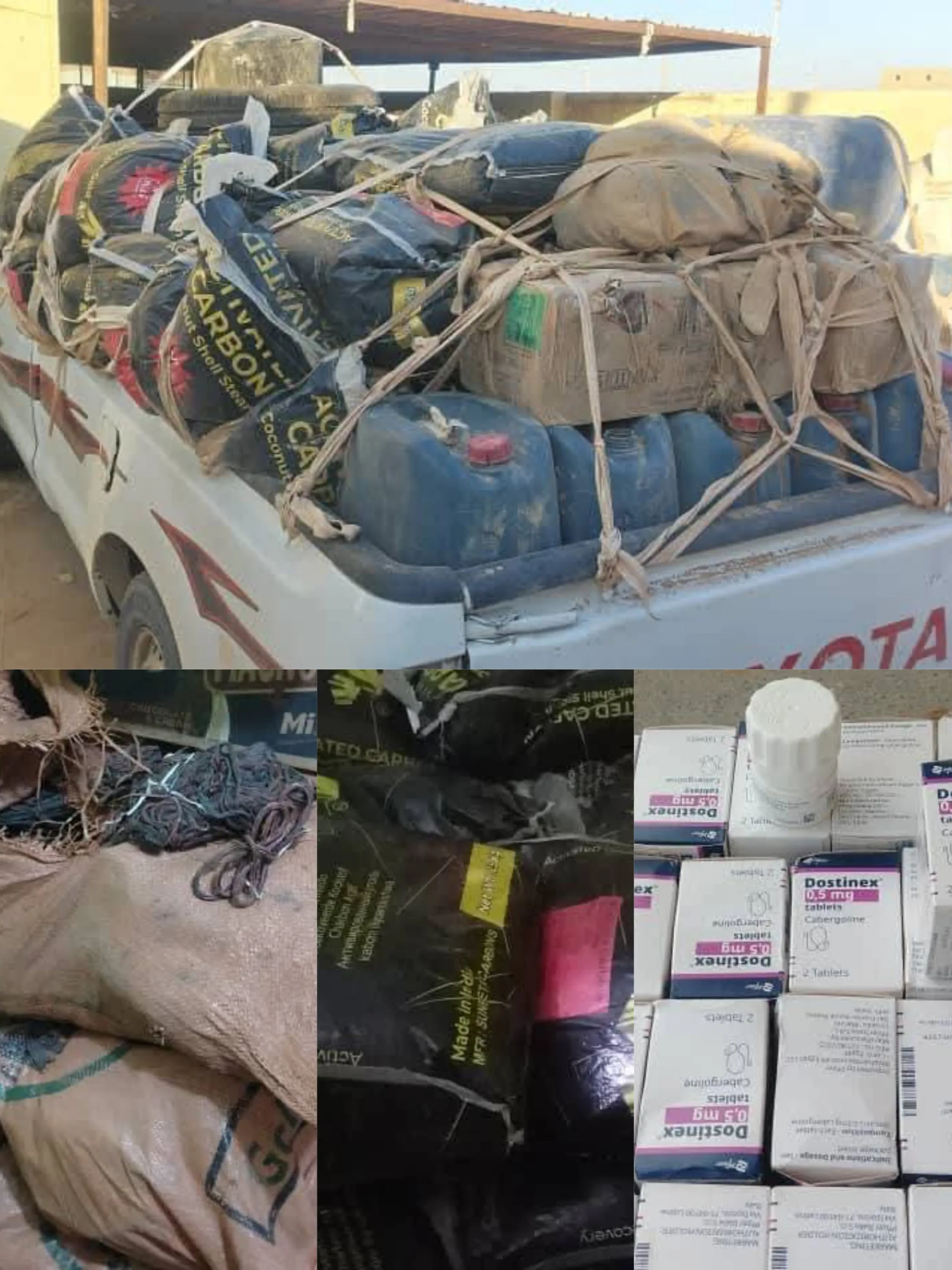 تمكن فرع مكافحة التهريب وادي حلفا من إحباط محاولة تهريب ، وذلك بضبط ٦ مركبات (بكاسي) تحمل ٩٤ جوال فحم حجري، وأدوية بشرية قادمة لداخل البلاد ، وضبط ١٤٠ بكتر جازولين، و ٣٠٠ كيلو جرام من النحاس مهرب إلى خارج البلاد .