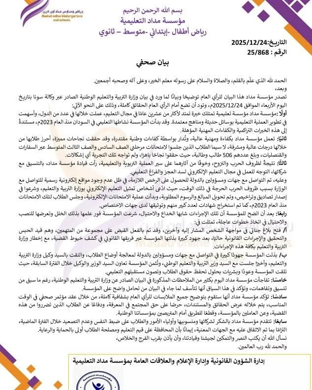 تصاعد الخلافات بين مؤسسة مداد التعليمية ووزارة التربية الإتحادية