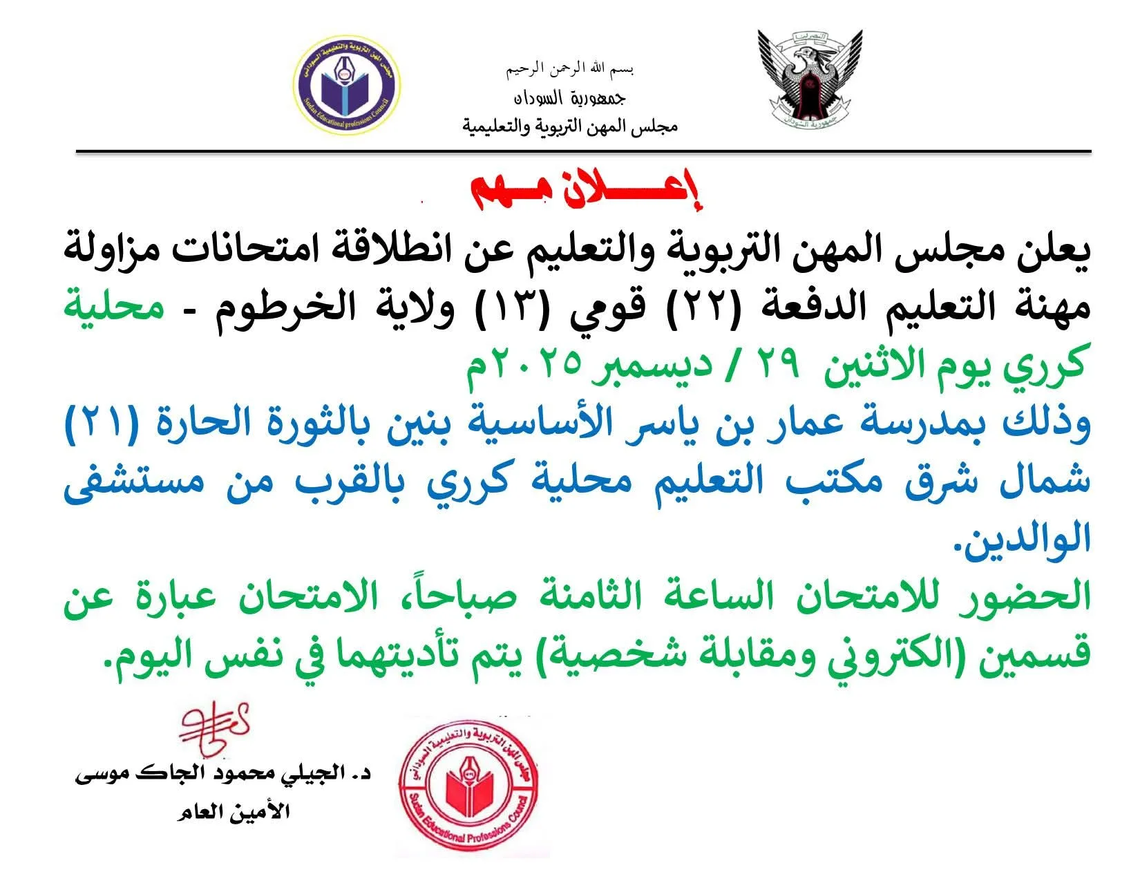 الرئيسية/محلية/إنطلاقة إمتحانات مزاولة مهنة التعليم في أم درمان محلية أخر الأخبار إنطلاقة إمتحانات مزاولة مهنة التعليم في أم درمان Alhadiمنذ 3 أسابيع0 36 أقل من دقيقة الوسوم# مزاولة المهنة ام درمان نسخ الرابط تم نسخ الرابط Alhadiمنذ 3 أسابيع0 36 أقل من دقيقة شاركها فيسبوك X ماسنجر ماسنجر واتساب تيلقرام