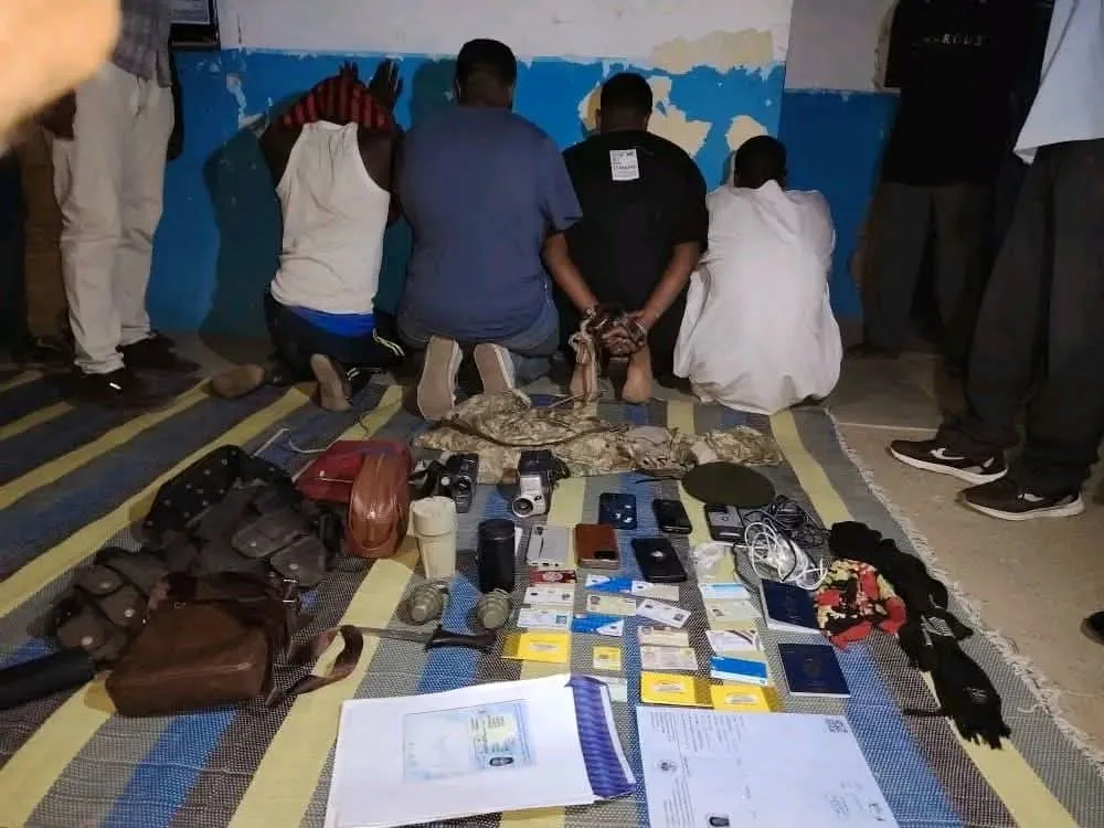عن ضبط المتهم الأول ( ن، ا، ج، ع) يعمل باحدي الدول العربية والمتهم المتهم الثاني ( ه، ح، إ) وبطرفهم الطالب المختطف (ع، م، ا. م) وبحوزتهما عدد (3) قرنيت ، زي عسكري ، عدد (2 ) كاميرا تصوير ، واقي رصاص ، آلة حادة ( سكين) كانت تستعمل في تهديد المجني عليه (7) هواتف (5) فيزا كارت وبطاقات تخص بعض المتهمين عدد (2) جواز سفر ، حقيبة صغيرة بها ملحقات أجهزة هواتف تم تحريزها معروضات في البلاغ وعند إخضاع المتهمين الإثنين للتحقيق أرشدا علي موقع المتهمين الثالث والرابع ومن خلال تنفيذ عملية مداهمة للمنزل مثار المعلومة بحي الروضة تم ضبط المتهم الثالث (م، ا، ج، ع) مقيم باحدي الدول العربية والمتهم الرابع (ج، ح) أجنبي الجنسية من دولة مجاورة ويعمل حارس بالعمارة