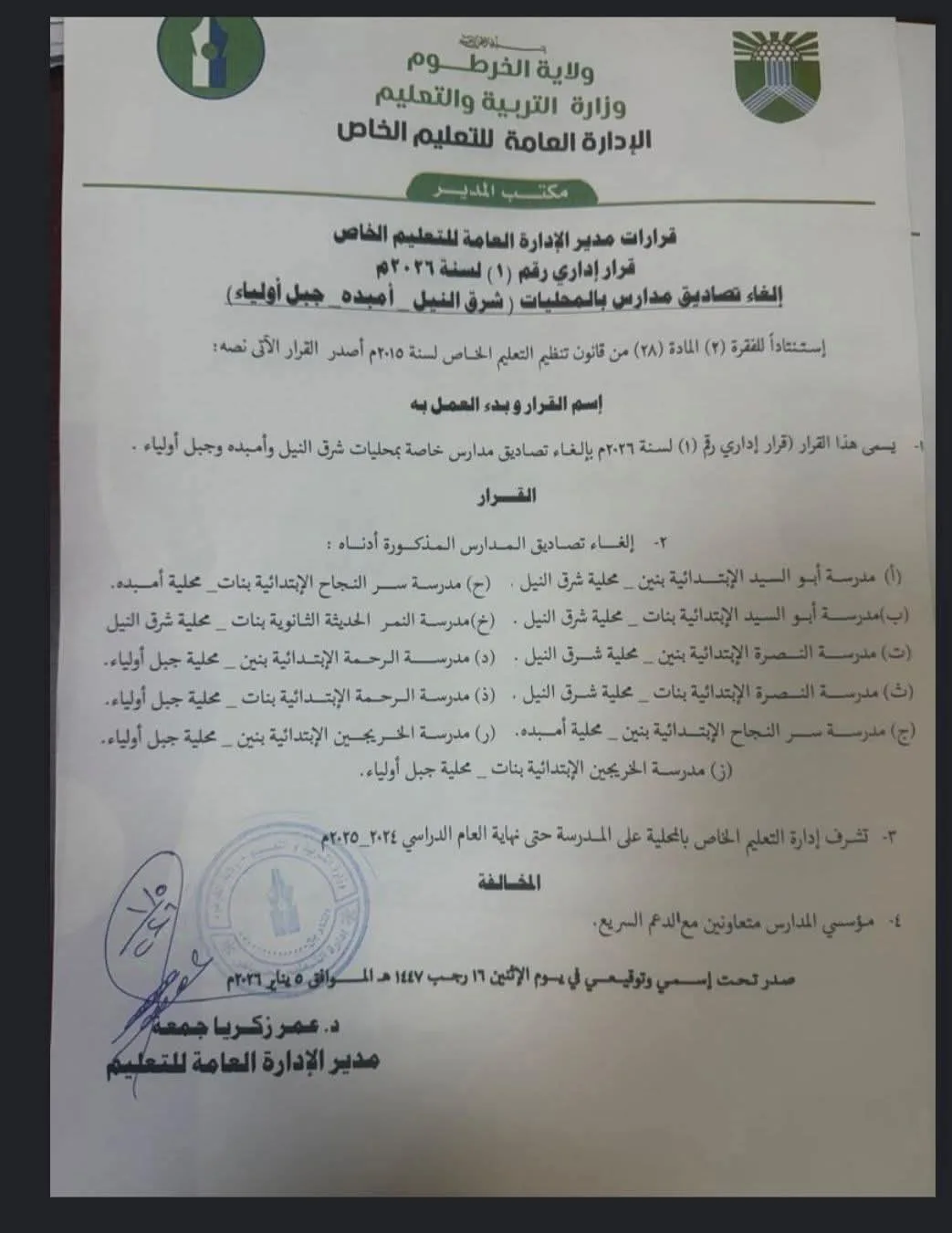 إلغاء تصاديق مدارس خاصة بولاية الخرطوم بسبب تعاون مؤسسي المدارس مع الدعـم السريـع