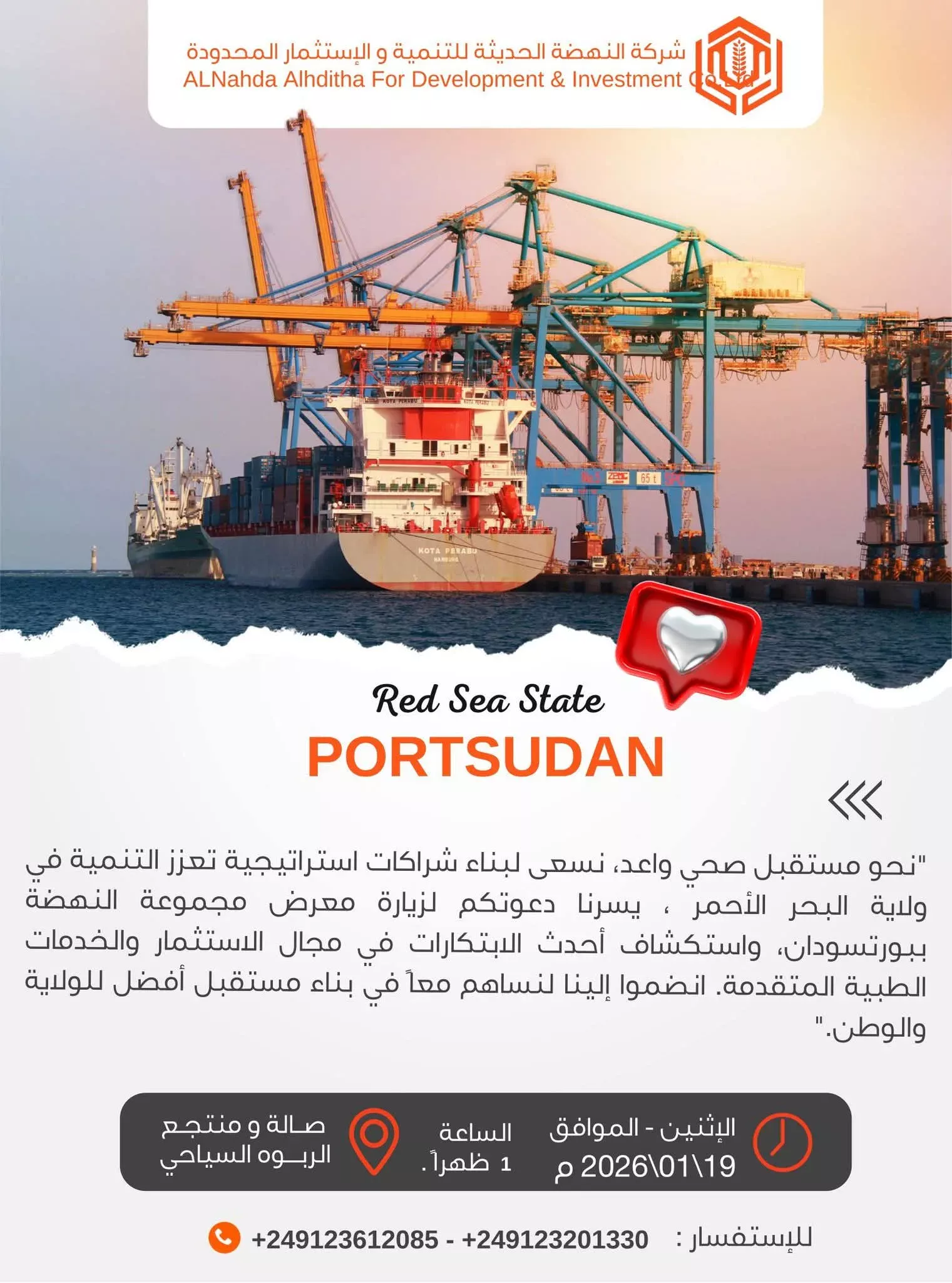 إنطلاقة معرض شركة النهضة الحديثة للتنمية والاستثمار بفندق الربوة ببورتسودان غداً الإثنين
