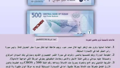 بنك السودان يعلن عن العلامات التأمينية لفئة الخمسمائة جنيه والالفي جنيه الطبعة الثانية