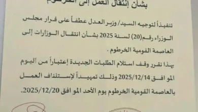 أوقف المسجل التجاري العام إستلام الطلبات الجديده في بورتسودان إبتداء من اليوم الأحد وذلك تمهيداً لاستئناف العمل بالعاصمة…