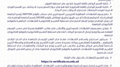 أعلنت الجامعة الوطنية عن بدء اجراءات إستخراج وإستلام الشهادات من المقر الرئيسي للجامعة بالخرطوم اعتباراً من شخر يناير 2026م ،…