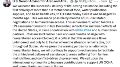 مسعد بولس يرحب بوصول أول شحنة مساعدات إنسانية لدارفور منذ 18 شهراً