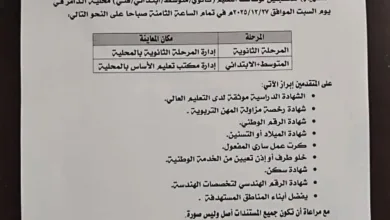 لجنة الاختيار بنهر النيل تعلن بدء معاينات وظائف التعليم بمحلية الدامر السبت المقبل