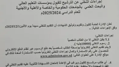 أعلنت الإدارة العامة للقبول وتقويم وتوثيق الشهادات بوزارة التعليم العالي والبحث العلمي عن بدء إجراءات التخلي عن الترشيح للقبول في…