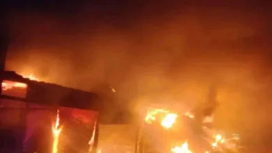 خسائر فادحة وتضرر أكثر من 20 محلاً تجارياً نتيجة حادث حريق بسوق الجبلين