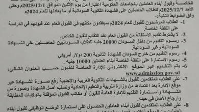 أعلنت الإدارة العامة للقبول وتقويم وتوثيق الشهادات فتح باب التقديم للدراسة على نظام النفقة الخاصة وقبول أبناء العاملين بالجامعات الحكومية…