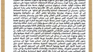 أصدر المجلس الأعلي لأهالي وادي حلفا بياناً تضامن فيه مع إتحاد شياخات المحس مطالباً بفك غموض زيارة وزير المعادن نور…