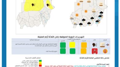 نشرت الهيئة العامة للأرصاد الجوية السودانية تقريرها عن تقلبات الطقس وأصدرت نشرتها عن الأحوال الجوية للأيام المقبلة ، وتوقعت الهيئة…